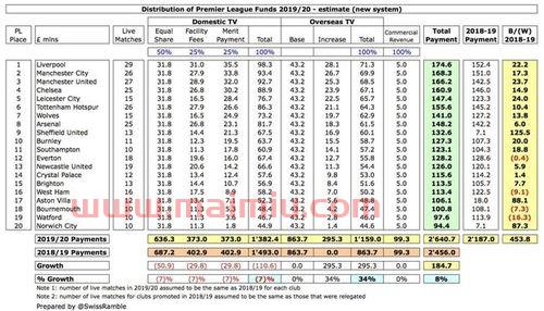 1、此外,在全英超中收入最少的是沃特福德,但他们的收入也达到了3560万美元(约合1807万英镑)。