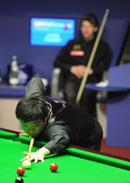 3、2015年斯诺克世锦赛第二轮,丁俊晖vs希金斯的头两个阶段前16局战罢,丁俊晖以9-7领先希金斯两局。第三阶段比赛在北京时间4月25日17:00开始。