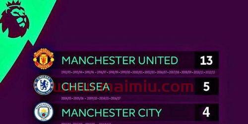 3、英超成立后至今(1992~2016),夺冠次数最多的球队是曼彻斯特联,这支球队累计获得13次英超联赛冠军。